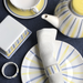 Fayence weiß Glasur glänzend - blaue Karos auf schwarzer Spirale
