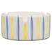 Fayence weiß gelbe Bänder und blaue Striche Glasur glänzend