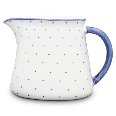 Der große Milchtopf von Hedwig Bollhagen mit der Formnummer "551C" verzaubert mit seinem harmonischen Retro-Design in klarer Konturensprache. Typisch für den soliden Krug aus 380 Gramm leichter Keramik ist der zylindrisch geformte Korpus, der sich zu einem charmant geschwungenen Rand mit kleiner, tropfsicherer Schneppe erweitert. Der breite, leicht konkav gerundete Henkel sorgt dafür, dass der 11,5 Zentimeter hohe sowie 12 Zentimeter breite Keramikkrug sicher in der Hand liegt. Mit einem großzügigen Fassungsvermögen von 800 ml bietet sich der nostalgische Krug 551A nicht nur zum stilvollen Anreichen von Milch, Sahne oder Saucen an. Der handgemachte Milchtopf 551B ist die große Variante zu den gleichfalls formschönen Krügen 551A und 551B und erweitert jede Geschirrserie auf ansprechende Weise.