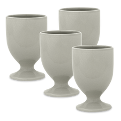 Der Fußbecher von Hedwig Bollhagen mit der Formnummer „597“ mag an einen königlichen Trinkpokal aus dem Mittelalter denken lassen; die anderen würden diesen Fußbecher wohl eher mit einem Eierbecher assoziieren. Charakteristisch ist der kelchförmige, erhabene Korpus mit dem runden, konischen Fuß. Mit einem Durchmesser von acht Zentimetern ist der zwölf Zentimeter hohe Fußbecher mehr hoch als breit. Und bei einem Fassungsvermögen von 0,2 Litern ist der 200 Gramm leichte Fußbecher der Designerin Heidi Manthey weder zu groß noch zu klein. So viel steht fest, im Fußbecher von Hedwig Bollhagen lassen sich Säfte aller Art fast schon aristokratisch servieren.