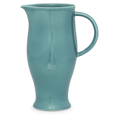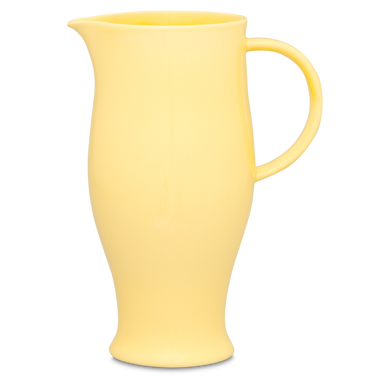 Der Krug mit der Formnummer “495” eines der ersten Stücke in Hedwig Bollhagen’s Kollektion in 1937 überzeugt durch seine klare, elegante Form. Charakteristisch ist der mittig leicht gebauchte Korpus mit dem weiten, offenen Hals. Der halbkreisförmige, etwa einen Zentimeter unterm oberen Rand angarnierte Henkel und die diametral gegenüberliegende, nach außen aufgestellte, tropfsichere Schneppe runden das zeitlose Design ab. Bei einer Höhe von 27 Zentimetern und einer Breite von 13,5 Zentimetern ist der Krug doppelt so hoch wie breit. Und mit einem Fassungsvermögen von zwei Litern gehört dieser Krug schon zu den größeren im keramischen Sortiment von Hedwig Bollhagen. Ein Wasserkrug gehört heute wieder auf jeden Tisch einer Familie, die Nachhaltigkeit mit gutem Design verbinden möchte.