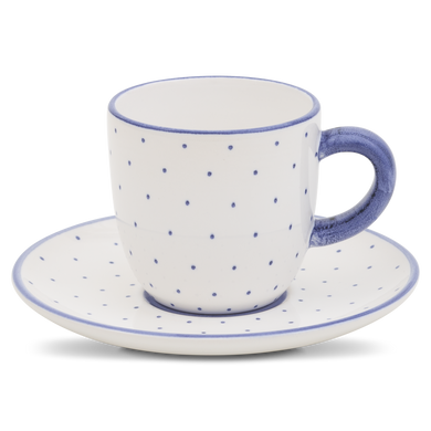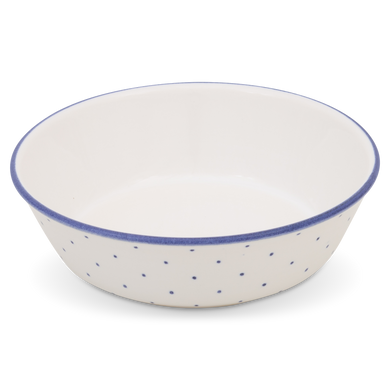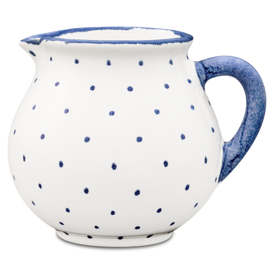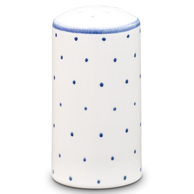 Fayence weiß mit blauen Punkten und Abschluß Glasur glänzend