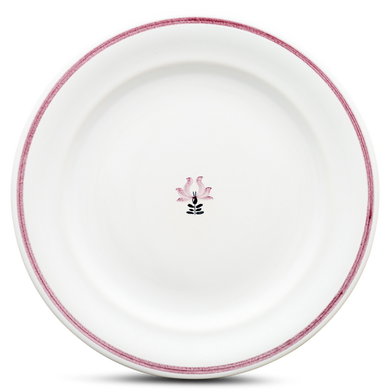 Fayence weiß mit roter Blume und Abschluß Glasur glänzend