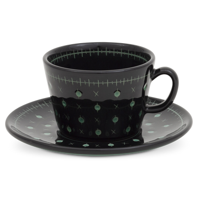 Ritz Glasur schwarz glänzend mit grünen Punkten und Kreuzen