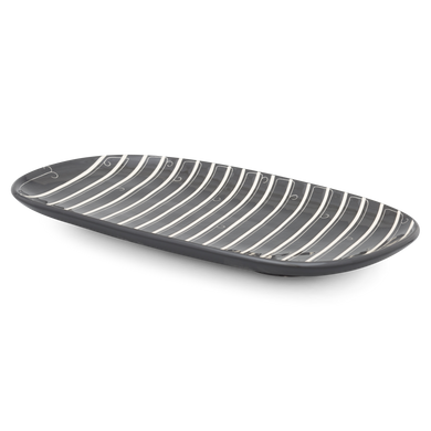 schwarzer Grund, schmale elfenbeinfarbige Querstreifen, dünnes elfenbeinfarbigen, geschlängeltes Band