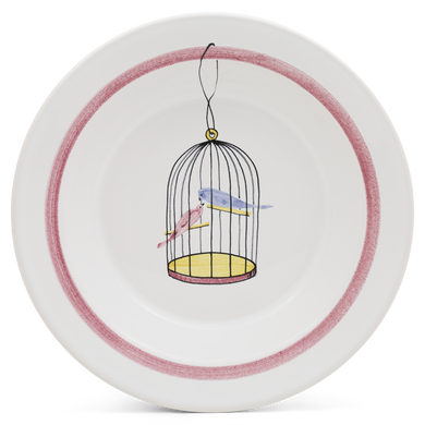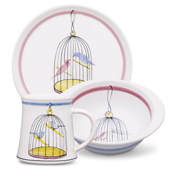 Fayence weiß mit Malerei Vogelbauer Glasur glänzend