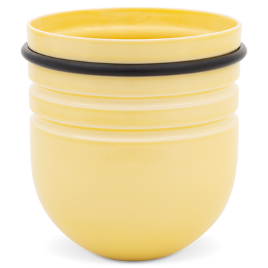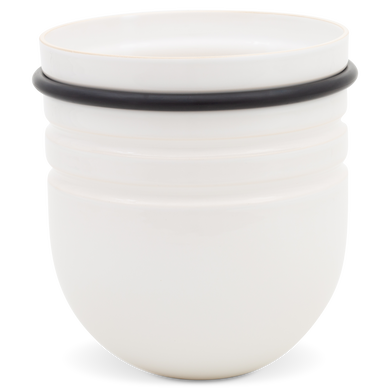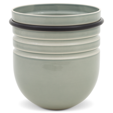 Dank drei umlaufender Rillen lässt sich der Keramiktopf individuell in der Höhe positionieren – ein Gummiring fixiert ihn sicher in der gewünschten Stellung. So bestimmen Sie selbst, wie weit der Topf aus dem Regalfach herausragt: dezent integriert oder als markantes Designstatement.