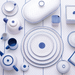 Fayence weiß mit blauen Punkten und Abschluß Glasur glänzend