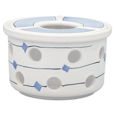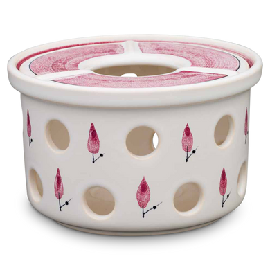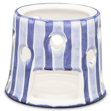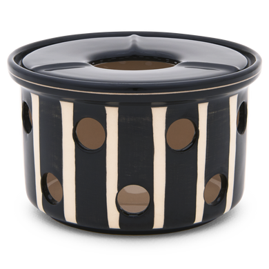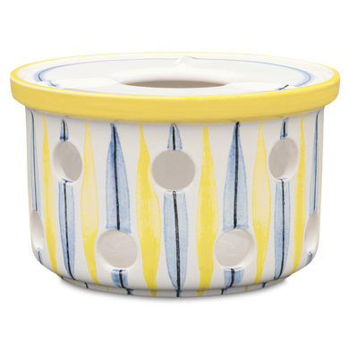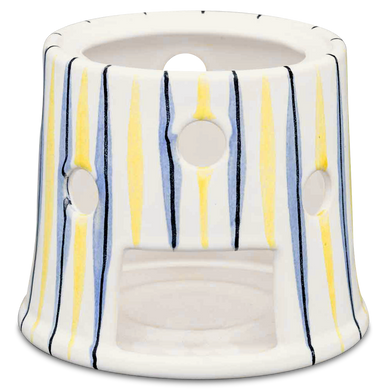 Das erste Stövchen aus Keramik nahm Hedwig Bollhagen vor 1958 in die Produktpalette der Marwitzer Keramikmanufaktur auf. Die ansprechenden Dekore auf den keramischen Feuerstellen sind der Blickfang jeder Tee-Zeremonie. Von blau (117) oder rot geblümt (118) über weiß-blaue (137) oder gelb-blaue Bänder (138) bis zu den legendären Sgraffito-Ritz-Dekoren Kreuzpunkt (600), senkrechter Balken (612) oder Fischernetz (661): Der umfangreiche Muster-Mix macht die Stövchen von Hedwig Bollhagen so besonders.