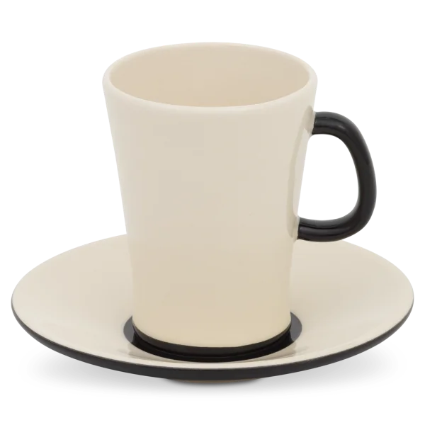 La tasse à chocolat de Hedwig Bollhagen, portant le numéro de modèle « 572 », est en réalité une tasse. Elle se caractérise par son corps conique s'évasant vers le haut et par son anse incurvée vers le bas. Avec un diamètre de sept centimètres, cette tasse à cacao de huit centimètres et demi de haut est presque aussi large que haute. D'une contenance de 0,13 litre, cette tasse fait certes partie des plus petites de la gamme, mais n'en est pas moins raffinée. Une chose est sûre : qu'il s'agisse de chocolat chaud au miel, de cacao à la cannelle et aux clous de girofle ou de café au chocolat et à la cardamome, les tasses à cacao Hedwig Bollhagen, d'un poids de 150 grammes, mettent encore mieux en valeur les saveurs hivernales des boissons au cacao.