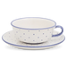 Faience bianca con punti blu e smalto lucido