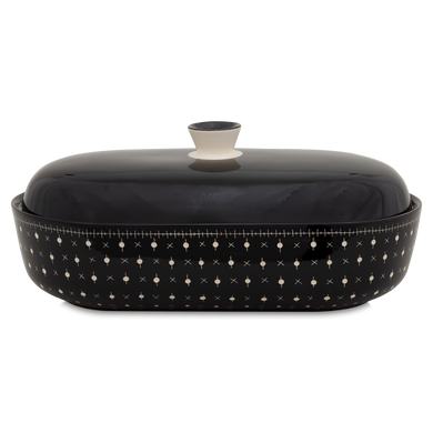 Die Dose mit der Formnummer “481” von Hedwig Bollhagen ist bei den Mitarbeitern der Keramikmanufaktur in Marwitz auch als Brottopf bekannt. Das zeitlos schlichte, zweiteilige Set aus Behälter und Deckel prägte schon das Alltagsdesign in der ehemaligen DDR und wird heute von Designliebhabern neu entdeckt. Charakteristisch sind der rechteckig-ovale, bauchige Korpus der Dose und der nach oben bauchige Deckel mit dem angarnierten, kegelförmigen Griff. Mit einer Höhe von 14,5 Zentimetern, einer Breite von 20 Zentimetern und einem Volumen von zweieinhalb Litern gehört der Brottopf 481 schon zu den großen Keramiken im Sortiment von Hedwig Bollhagen. Ob Kastenbrot, Baguette oder Landkruste, dieser formschöne Brottopf bietet einen nachhaltigen und hygienischen Aufbewahrungsort und darf in keiner Designliebhaber Küche fehlen.