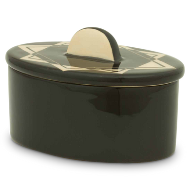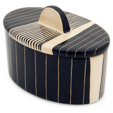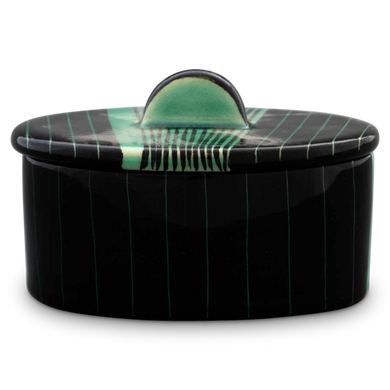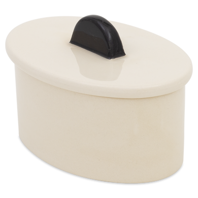 Die Dose von Hedwig Bollhagen mit der Formnummer „876“ besticht durch ihren zeitlos ansprechenden Designcharakter mit charmant-nostalgischer Note. Typisch für das zweiteilige Set, bestehend aus Keramikgefäß und Verschluss, sind der oval fließende, geradlinig wachsende Korpus und der flache Deckel mit harmonisch geschwungenem, halbkeisförmigem Griff. Mit einer Höhe von 10 Zentimetern und einer Länge von 13 Zentimetern bietet sich die formschöne Keramikdose ideal zum Aufbewahren diverser Köstlichkeiten und Schmuckschätze an. Die 100 ml fassende und nur 190 Gramm leichte Dose mit Griff 876 ist ein von Hand gemachtes Unikat, das stets geschmackvolle Akzente im Interieur setzt und mit hoher Funktionalität überzeugt.