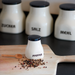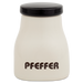 Die Gewürzdose „Pfeffer“ HB 556 überzeugt durch ihre kompakte und elegante Form, die sich perfekt für die Aufbewahrung von gemahlenem Pfeffer oder Pfefferkörnern eignet. Mit einer Höhe von 8,5 cm und einem Fassungsvermögen von 0,13 Litern bietet sie ausreichend Platz, um das Gewürz trocken und aromatisch zu halten. Der cremefarbene Korpus mit der markanten Aufschrift „PFEFFER“ und der schwarze, dicht schließende Deckel machen die Dose zu einem praktischen und stilvollen Begleiter in jeder Küche. Diese handliche Dose gibt es noch für zahlreiche andere Gewürze wie Curry, Cayenne oder Kümmel und lässt sich wunderbar mit der größeren Variante, welche die Formnummer „HB 595” trägt, kombinieren. Diese dient der Aufbewahrung von größeren Mengen wie Mehl, Zucker, Griess oder Müsli. Beide Dosen, klein (HB 556) und groß (HB 595), gibt es auch für Salz. Damit haben Sie das perfekte Duo für jede Küche, denn seien wir ehrlich – ohne Salz und Pfeffer ist jede Mahlzeit nur halb so spannend! Gemeinsam bringen diese stilvollen Dosen Ordnung, Geschmack und eine Prise Eleganz in Ihre Küche. Sie bieten nicht nur eine dekorative Aufbewahrungslösung, sondern auch Funktionalität auf höchstem handwerklichen Niveau, wie sie seit 1934 in den Hedwig Bollhagen Werkstätten in Marwitz gepflegt wird.