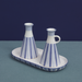 Das dreiteilige Essig-Öl-Set HB 539 vereint modernes Design mit traditioneller Handwerkskunst und bringt stilvolle Eleganz auf Ihren Esstisch. Die beiden handgefertigten Flakons – HB 539 und HB 539O – beeindrucken mit ihrer pyramidenförmigen Silhouette, die sich zu einem schmalen Hals verjüngt. Der Flakon HB 539 überzeugt mit seiner schlichten, skulpturalen Form und kann vielseitig als Essig- oder Ölflasche, Duftflakon oder kleine Vase verwendet werden. Der Flakon HB 539O ergänzt das Set mit einem praktischen Griff für einfaches Ausgießen und einem abnehmbaren Naturkorken, der den Inhalt frisch hält. Komplettiert wird das Ensemble durch die Platte HB 486, die mit ihrer ellipsenförmigen Form eine elegante Basis für die Flakons bildet und sich ideal zum Servieren von Gewürzen oder kleinen Köstlichkeiten eignet.  Seit 1934 werden diese zeitlosen Keramiken in den Hedwig Bollhagen Werkstätten in Marwitz von Hand gefertigt – für höchste Qualität und kunstvolle Eleganz auf Ihrem Tisch. Perfekt kombinierbar mit unseren Salz- und Pfefferstreuern, beschrifteten Gewürzdosen oder einer passenden Butterdose für ein harmonisches Tischarrangement. Entdecken Sie unser gesamtes Sortiment an handgefertigtem Geschirr und bringen Sie handwerkliche Eleganz in Ihren Alltag.