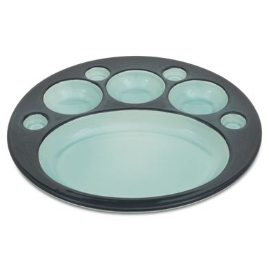 Ein echter Hingucker für gesellige Abende: Der Fondueteller mit der Formnummer “583“ von Hedwig Bollhagen macht das gemeinsame Essen nicht nur praktischer, sondern auch stilvoller! Der Teller hat einen Durchmesser von 24 cm, eine Höhe von 2,5 cm und ist in verschiedenen Farben erhältlich. Er zeichnet sich durch die charakteristischen Vertiefungen aus, die Platz für Dips, Saucen und Beilagen bieten und das gemeinsame Fondue-Essen zum Genuss machen. Die große zentrale Fläche ist ideal für Fleisch, Gemüse oder Brotstücke, während die kleinen Fächer perfekt dafür sorgen, dass jede Zutat ihren eigenen Platz findet und sich die Aromen nicht vermischen. Dieser Teller ist ideal für gemütliche Fondueabende oder Raclette, bei denen jeder Gast seine Lieblingszutaten individuell kombinieren kann. Runden Sie das Erlebnis mit weiteren Produkten aus unserem Sortiment ab: Kleine oder große Schalen und Schüsseln für Dips und Beilagen sowie Platten und Tabletts für Fleisch und Gemüse – perfekt, um jede Köstlichkeit stilvoll in Szene zu setzen und den Fondue-Abend zu vervollständigen.