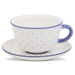 Fayence weiß mit blauen Punkten und Abschluß Glasur glänzend