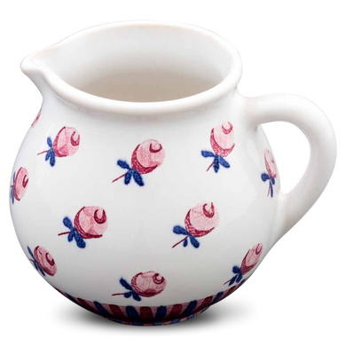 Der Sahnegießer von Hedwig Bollhagen mit der Formnummer „1065C“ erinnert mit seinem nostalgisch geschwungenen Design an ein Retro-Milchkännchen aus guten alten Zeiten. Gleichzeitig wirkt die Formgebung der 130 Gramm leichten Keramik aufgrund klassischer, schlichter Konturenzeichnung alles andere als altbacken. Die charaktervolle Bauchform des 7 Zentimeter hohen wie breiten Gießers verjüngt sich nach oben hin zu einem weich fließenden Rand, an dem sich die kleine, tropfsichere Mündung befindet. Der ellipsenförmig geschwungene Henkel des Sahnegießers aus solider Keramik rundet die Gestaltung harmonisch ab. Mit einem Fassungsvermögen von 130 ml bietet sich der von Hand gemachte Gießer 1065C ideal als mittelgroßes Serviergefäß für die Kaffeetafel an und ergänzt viele verschiedene Geschirrserien mit edler Note.