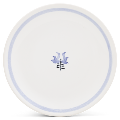 Fayence weiß mit blauer Blume und Abschluß Glasur glänzend