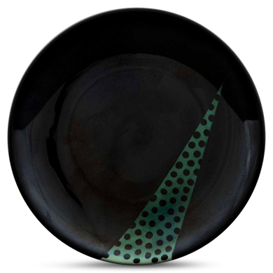 Ritz grün mit schwarzen Punkten und Tauchpunkt Glasur glänzend