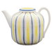 Fayence weiß gelbe Bänder und blaue Striche Glasur glänzend