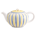 Fayence weiß gelbe Bänder und blaue Striche Glasur glänzend