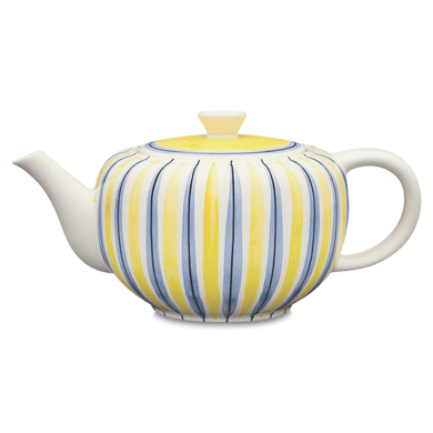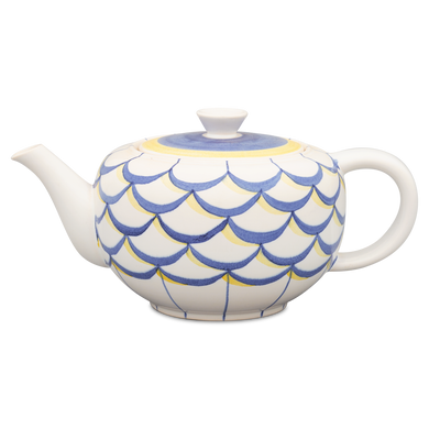 Die Teekanne mit der Formnummer „499“ von Hedwig Bollhagen bringt den Duft von Oolong, Matcha und Ceylon erst so richtig zur Geltung. Mit einem Durchmesser von 16,5 Zentimetern, einer Gesamthöhe von 13 Zentimetern und einem Fassungsvermögen von 1,3 Litern ist die 800 Gramm schwere Teekanne schon eine der größeren von Hedwig Bollhagen. Charakteristisch ist der kegelförmige Knauf auf dem flachen, runden Deckel. Der kugelförmig-bauchige, nach oben abgeflachte Korpus, die geschweifte Ausgussröhre mit der tropfsicheren Tülle und der halbrunde Henkel runden das Design harmonisch ab. Eins ist sicher, ob Hagebutte, Kamille oder Thymian, aus der Teekanne 499 lässt sich jedes Teegetränk stilvoll und formvollendet einschenken.