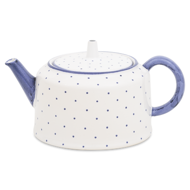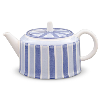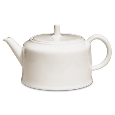Die Teekanne mit der Formnummer „575“ nahm Hedwig Bollhagen Anfang der 1950er-Jahre in die Produktion auf. Mit dem niedrigen, zylinderförmigen Korpus erinnert die allererste Teekanne von HB dabei aber eher an einen Kessel. Mit ihren Maßen (11,5 Zentimeter breit, 10,5 Zentimeter hoch) und einem Fassungsvermögen von nur einem halben Liter gehört diese Teekanne eher zu den kleinen von Hedwig Bollhagen. Und mit gerade einmal 380 Gramm, die sie auf die Waage bringt, könnte man sie wohl auch eher als Leichtgewicht bezeichnen. Charakteristisch ist der stiftförmige Griff auf dem geraden, runden Deckel. Der seitliche Henkel und der gegenüberliegende, gerade hochgezogene Schnabelausguss runden das schlichte Design gekonnt ab.