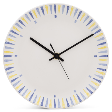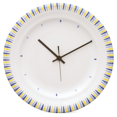 Fayence weiß Randbemalung gelbe, hell-und dunkelblaue Kegel