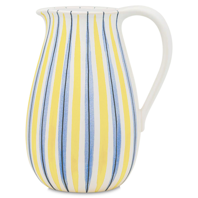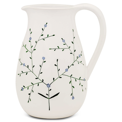 Der Krug von Hedwig Bollhagen mit der Formnummer „1100“ überzeugt durch seine großzügige Form. Charakteristisch ist der voluminöse, birnenförmige Korpus. Der große, am oberen Rand anmontierte Henkel und die diametral gegenüberliegende, nach außen aufgestellte, tropfsichere Schneppe runden das urige Design gekonnt ab. Bei einem Durchmesser von 13 Zentimetern ist der 21 Zentimeter hohe Saftkrug mehr hoch als breit. Und bei einem Fassungsvermögen von einem Liter gehört der 700 Gramm schwere Saftkrug auch schon zu den großen im Sortiment von Hedwig Bollhagen. Eins ist sicher, sein nostalgisches Design und die robuste Keramik machen diesen Krug tagaus, tagein zur Allzweckwaffe.