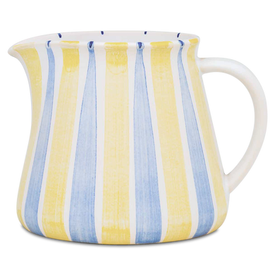 Der große Milchtopf von Hedwig Bollhagen mit der Formnummer "551D" vereint ein harmonisches Retro-Design mit moderner, klarer Konturensprache. Typisch für den soliden Krug aus 480 Gramm formschöner Keramik ist ein zylindrische Korpus, der sich zu einem charmant geschwungenen Rand mit kleiner, tropfsicherer Schneppe erweitert. Der breite, leicht konkav gerundete Henkel garantiert, dass der 13 Zentimeter hohe sowie 14 Zentimeter breite Keramikkrug angenehm und sicher in der Hand liegt. Der 1,2 Liter fassende Milchtopf gehört zu den größeren Krügen im HB Sortiment und bietet sich nicht nur für Milch und Kakao an, sondern macht auch als Saftkrug und für andere Einsatzzwecke eine tolle Figur.