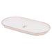 Die Platte von Hedwig Bollhagen mit der Formnummer „486“ geht genauso gut auch als Tablett durch. Charakteristisch ist der ellipsenförmige Korpus. Bei einer Länge von 24 Zentimetern und einer Breite von zwölf Zentimetern könnte diese Platte aber auch als die zweieiige, ovale Zwillingsschwester der rechteckigen Platte mit der Formnummer 852 sein. Mit seiner abgerundeten Form ist das 400 Gramm schwere Tablett jedenfalls wie gemacht zum Zureichen von Essig-Öl-Flaschen oder Salz und Pfeffer Menagen. Auch Tapas, Petit Fours oder Biscuit-Kekse lassen sich auf dieser zwei Zentimeter hohen Platte stilvoll und formvollendet servieren. Eins ist sicher, dieses ovale Tablett ist ein Haushaltshelfer par excellence.