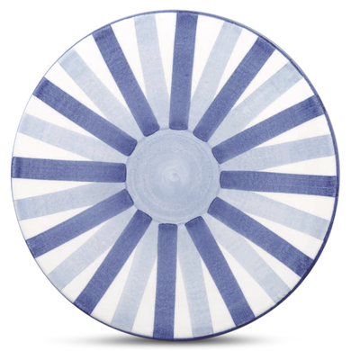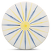 Fayence weiß gelbe Bänder und blaue Striche Glasur glänzend