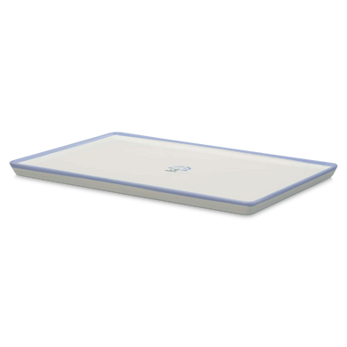 Die Platte von Hedwig Bollhagen mit der Formnummer „852“ ist genaugenommen ein Tablett. Bei einer Länge von 24 Zentimetern und einer Breite von zwölf Zentimetern könnte diese Platte sogar als die kleine Schwester vom Kabarett-Tablett mit der Formnummer 540 durchgehen. Mit der rechteckigen Form ist diese Platte von Hedwig Bollhagen jedenfalls wie gemacht für Strudel, Braten, Knabbereien und Co. Und eins ist sicher, wenn der Rehrücken oder die französischen Törtchen aus Buttercreme auf der etwas mehr als zwei Zentimeter hohen und 530 Gramm schweren, keramischen Platte so richtig in Szene gesetzt werden, dann tropfen die Geschmacksknospen.