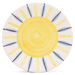 Fayence weiß gelbe Bänder und blaue Striche Glasur glänzend