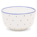 Fayence weiß mit blauen Punkten und Abschluß Glasur glänzend