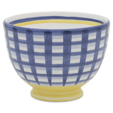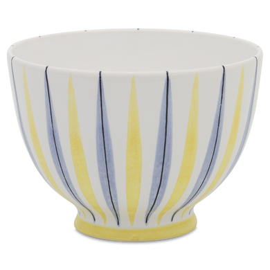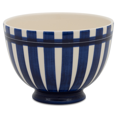 Fayence weiß - blaue und hellblaue Streifen - Glasur glänzend