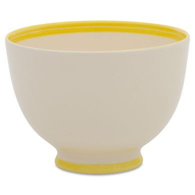Die Schale von Hedwig Bollhagen mit der Formnummer „549C“ ist die große Schwester der etwas kleineren Schale mit der Formnummer 549B. Charakteristisch ist der kugelförmig-gebauchte, sich nach oben hin öffnende Korpus. Das Gefäß, das die Mitarbeiter der Marwitzer Keramik-Manufaktur auch gerne „Kumpen“ nennen, steht auf einem etwa eineinhalb Zentimeter hohen, zylinderförmigen Fuß. Bei einem Durchmesser von 14 Zentimetern ist die zehn Zentimeter hohe Schale tiefer als ein Teller, aber flacher als eine Schüssel. Und mit einem Fassungsvermögen von einem halben Liter gehört der 400 Gramm schwere Kumpen wohl eher zu den größeren Schalen im Sortiment von Hedwig Bollhagen.