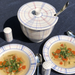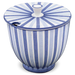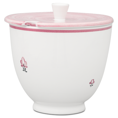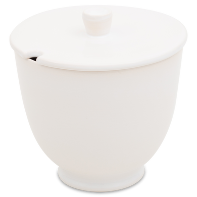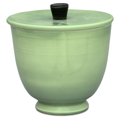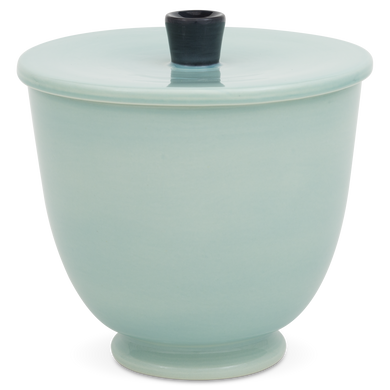 Die Terrine mit der Formnummer 549E von Hedwig Bollhagen besticht durch ihre zeitlose, funktionale Form. Bei einer Höhe von 19 Zentimetern und einer Breite von 19,5 Zentimetern ist die Terrine fast so hoch wie breit. Und mit einem Fassungsvermögen von immerhin drei Litern gehört diese Terrine wohl auch schon zu den größeren Keramiken von Hedwig Bollhagen. Charakteristisch für das zweiteilige Set aus Gefäß und Deckel sind der bauchig geformte, nach oben zylinderförmig sich öffnende Korpus und der pilzförmige, angarnierte Knauf auf dem flachen Deckel. Eine etwa einen Zentimeter kleine, halbrunde Öffnung am Deckelrand ermöglicht es, die Suppenkelle sauber in der Terrine zu lassen. Den Deckel erhalten Sie auf Wunsch aber auch ohne Öffnung.