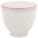 Fayence weiss mit blauen Punkten und rosa Rand Glasur glänzend