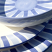 Fayence weiß - blaue und hellblaue Streifen - Glasur glänzend