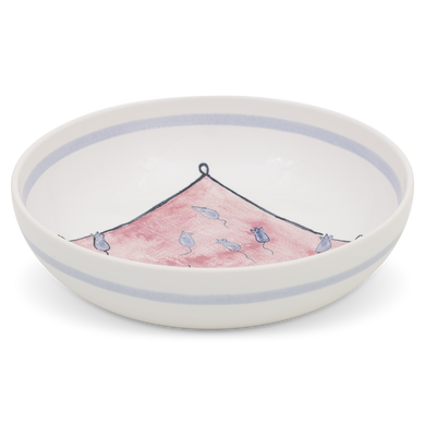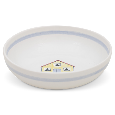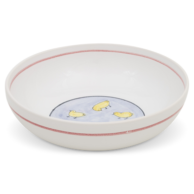 Die Schale von Hedwig Bollhagen mit der Formnummer „503C“ Einst als Kinderschale hergestellt, lässt Sie den Nachwuchs ganz sicher groß und stark werden. Charakteristisch ist die runde Schalenform. Tiefer als ein Teller, flacher als eine Schüssel, ist die fünf Zentimeter hohe Schale bei einem Durchmesser von 18 Zentimetern mehr als dreimal so breit wie hoch. Bei einem Fassungsvermögen von 0,3 Litern ist die 350 Gramm leichte Suppenschale weder zu klein noch zu groß. Ob Spinat, Grießbrei oder gekochter Kürbis, aus der keramischen Kinderschale mit den lustigen Motiven löffeln auch kleine Suppenkasper ihr Essen ratzekahl leer. Schließlich darf wenigstens der Teller so aussehen, als würde es immer nur Gummibärchen, Schokolade und Bonbons regnen.