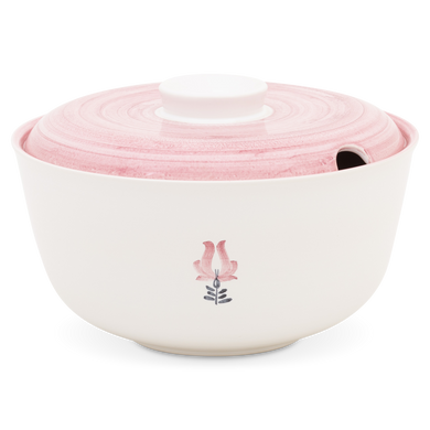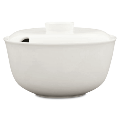 Die Kompottschüssel von Hedwig Bollhagen mit der Formnummer „599“ ist garantiert der krönende Abschluss eines jeden Gänge-Menüs. Schon Urgroßmama könnte in der 670 Gramm schweren Kompottschüssel ihr Eingewecktes aus dem Garten serviert haben. Charakteristisch ist der bauchig-kugelförmige nach oben leicht konisch verlaufende Korpus. Mit einem Fassungsvermögen von 1,4 Liter gehört die 19 Zentimeter breite und 13,5 Zentimeter hohe Kompottschüssel schon zu den größeren im Sortiment. Und wie die meisten Keramiken von Hedwig Bollhagen ist auch die Nutzung dieser Kompottschüssel flexibel. Mit dem passenden, keramischen Deckel lässt sich die Kompottschüssel nämlich auch ganz einfach zur praktischen Kartoffelschüssel umfunktionieren.