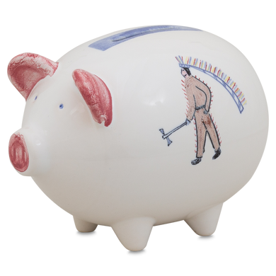 Das Sparschwein von Hedwig Bollhagen mit der Formnummer „1073“ ist die große Schwester vom etwas kleineren Sparschwein mit der Formnummer 1074. Charakteristisch sind der eierförmige Korpus mit der schweinetypischen Steckdosen-Schnauze, den anmontierten zwei Ohren, vier Beinen sowie dem Geldschlitz am Rücken. Ob Münzen oder Scheine: Bei einem Durchmesser von 18 Zentimetern bleibt im Bauch des 16 Zentimeter hohen Sparschweins genügend Platz für Geldstücke und große Wünsche aller Art. So viel steht fest, zum Schlachten ist dieses Sparschwein aber viel zu Schade.