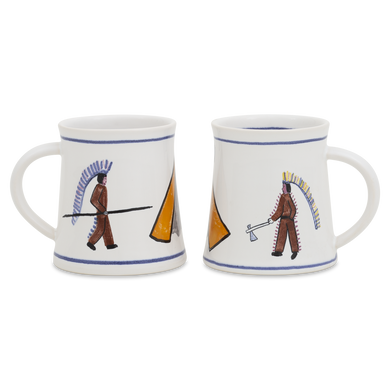 Fayence weiß mit Malerei Indianer Glasur glänzend