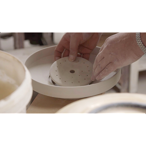 Die Kaffeetasse mit der Formnummer „1065“ gehört wohl inzwischen zu den heimlichen Klassikern aus der Keramikmanufaktur von Hedwig Bollhagen. Die zeitlos schlichte Kaffeetasse prägte schon das Alltagsdesign in der ehemaligen DDR und wird heute von Designliebhabern wieder entdeckt. Charakteristisch ist das nach oben großzügig geöffnete, kugelförmig-gebauchte Gefäß. Nach unten findet der filigrane Fuß der Kaffeetasse in der kreisrunden Öffnung der Untertasse stabilen Halt. Mit einem Fassungsvermögen von 0,15 Litern gehört die 240 Gramm leichte, sechs Zentimeter hohe und vierzehn Zentimeter breite Kaffeetasse schon zu den etwas größeren ihrer Art. Ob Muckefuck, Blümchenkaffee oder Arabica, in der Kaffeekanne von Hedwig Bollhagen lässt sich der Sonntagskaffee besonders stilvoll servieren.