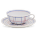 Die Teetasse von Hedwig Bollhagen mit der Formnummer „501“ entzückt durch ihr klassisch-nostalgisches Design und eine traditionsverbundene Gestaltung. Mit einem Durchmesser von elf Zentimetern ist die fünf Zentimeter niedrige Tasse beinahe doppelt so breit wie hoch – Idealmaße für eine entspannte Tasse Tee mit vollmundiger Aromaentfaltung. Typisch für die 170 ml fassende Teetasse 501 aus handgemachter Keramik ist eine filigran fließende Konturgebung. Der halbrunde Henkel sowie der leicht nach außen gewölbte Rand (“Trinklippe”), der für Tropfsicherheit beim Trinken sorgt, sind weitere unikate Markenzeichen. Und falls dennoch mal beim Servieren ein Malheur passieren sollte, fängt die nach oben zart gebogene Untertasse mit Sicherheit alles auf.