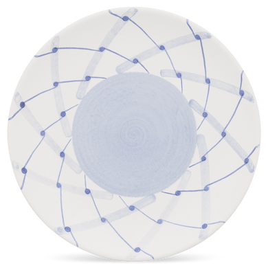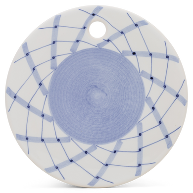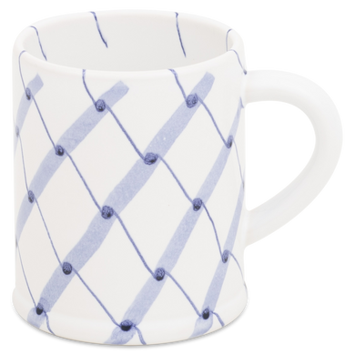 Fayence weiß blaues Rautennetz Glasur glänzend