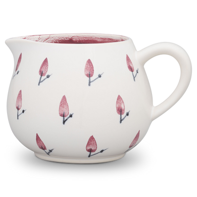 Fayence weiß rote Blätter an schwarzem Stiel Glasur glänzend