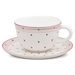 Fayence weiss mit blauen Punkten und rosa Rand Glasur glänzend